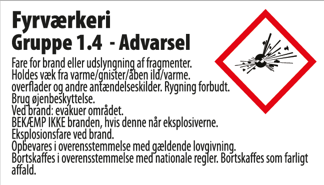 For fyrværkeri af typen KNITRENDE GRANULAT gælder følgende: